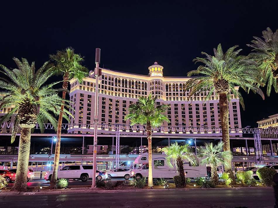 En seguida apareció el afamado Hotel Bellagio, con su icónica fuente danzante que nos brinda un espectáculo de elegancia y esplendor, y que ha sido escenario de numerosas películas y eventos, convirtiéndose en un símbolo de la ciudad. La fuente del Bellagio, situada frente al lujoso hotel, es conocida mundialmente por sus impresionantes coreografías acuáticas. Con más de 1,200 chorros de agua que alcanzan alturas de hasta 140 metros, el espectáculo es una maravilla técnica y artística. Cada actuación es única, con diferentes combinaciones de música y movimientos. Es otro recordatorio constante del glamour y la energía vibrante que caracterizan a Las Vegas.