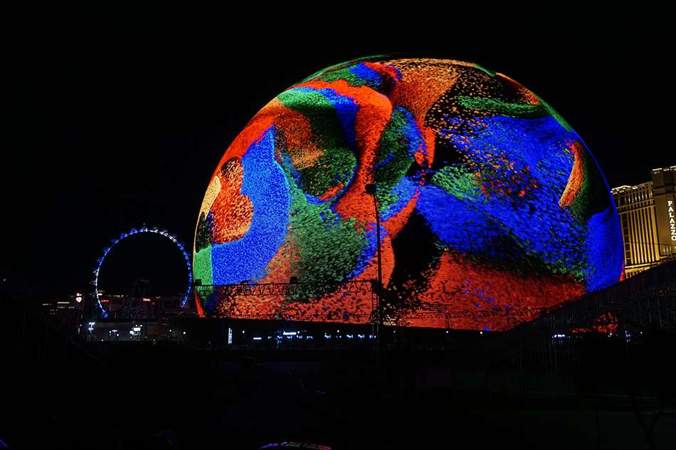 La Esfera está ubicada cerca del Venetian Resort, con una altura de 112 metros y un diámetro de 157 metros. Esta estructura es la pantalla LED más grande del mundo. La fachada exterior está cubierta por más de 1,2 millones de LED que pueden proyectar imágenes vibrantes y dinámicas, transformando la esfera en un lienzo gigante visible desde kilómetros a la redonda.