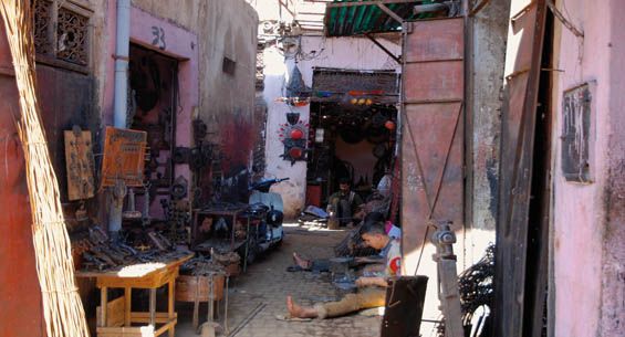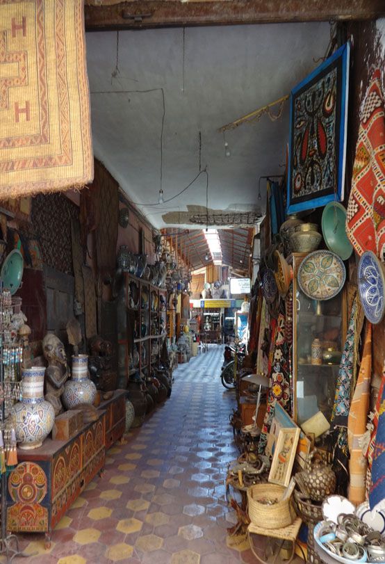 EL ZOCO: El Zoco es un laberinto de callejuelas llenas de puestos y tenderetes donde los marroquíes hacen sus compras y los comerciantes intentan negociar con los turistas. Ocupa numerosas y sinuosas calles. En él se puede comprar todo tipo de ropa, especias, comida, artesanía y productos típicos. Además, los artesanos se agrupan por gremios, donde puedes observar la elaboración de sus productos; tintoreros, canasteros, peleteros y herreros son algunos de los oficios que se dan cita en el zoco. Este es la cuna del regateo. La mejor hora para visitarlo es por la mañana.