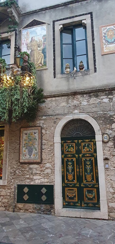 De noche, Taormina tiene mucho encanto. Los comercios decorados con muy buen gusto invitan a entrar. En la tienda “Aqua de Taormina” nos deleitamos probando fragancias de cítricos, y algunas otras más novedosas como la de “albahaca”. En los establecimientos de gastronomía local nos incitan a catar diferentes versiones del “pesto siciliano”. La cerámica artística de Caltagirona se halla por todas partes, así como la célebre “testa de moro”, una vasija para plantas de gran colorido, proveniente de la siniestra leyenda que puedes encontrar en el artículo de Catania, publicado anteriormente.