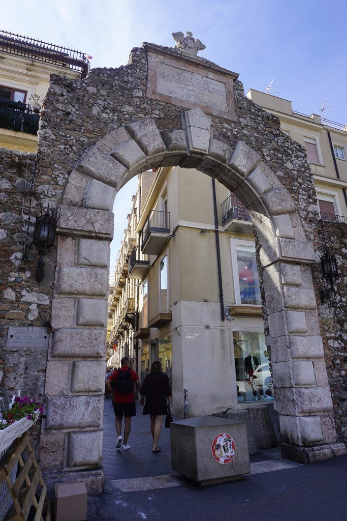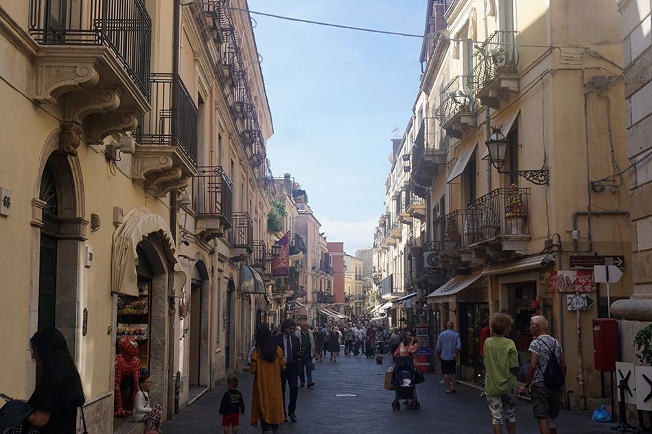 La Porta Messina, situada a unos metros de donde te deja el teleférico, marca la entrada a la calle principal Corso Umberto I, que se prolonga hasta otra de las puertas de la ciudad, la Porta Catania. Un recorrido donde se hallan muchos de los puntos de interés cultural, así como encantadoras tiendecitas de recuerdos típicos sicilianos y elegantes boutiques. Descubrimos reminiscencias de la ocupación de la corona de Aragón y calles de corte medieval con floridos balcones de buganvillas, la catedral de Taormina, Duomo de San Nicolo, los Jardines de la Villa Comunale o el palacio de los Duques de San Stefano, uno de los mejores ejemplos de arquitectura normanda de la isla.