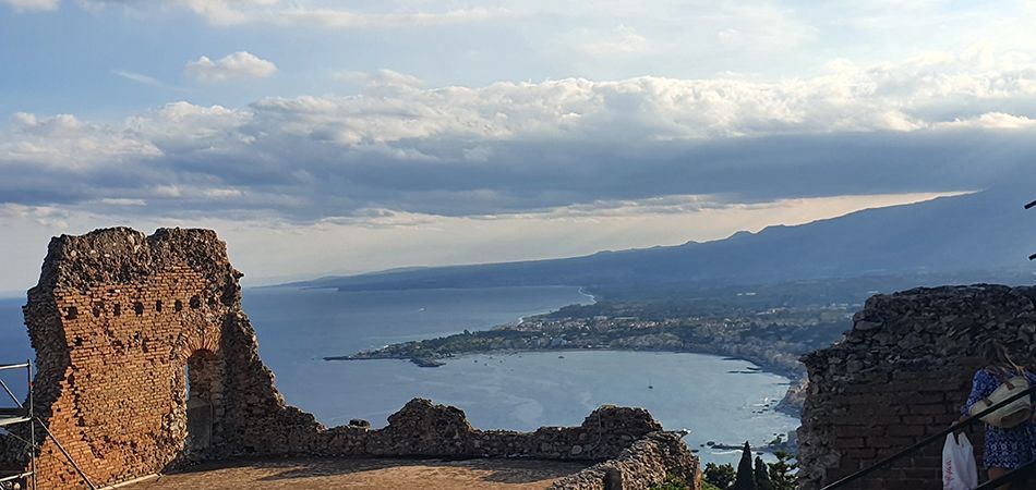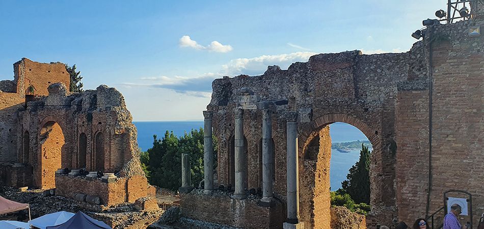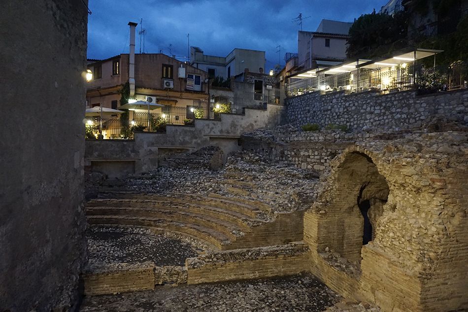 El Teatro Antico es un antiguo teatro griego reconstruido en la época de dominación romana. Todavía se conservan en pie algunas de las columnas corintias que se alzaban en el muro situado detrás del escenario, un lugar privilegiado sobre el litoral en el que actualmente se celebran conciertos y eventos en los meses de verano. Una visita ineludible, en parte por el entorno natural y el telón de fondo que además lo engrandece. La panorámica de la bahía de Naxos, el Etna, acantilados, calas y playas que lo rodean, hacen del Teatro de Taormina una de las postales más demandadas de Sicilia.