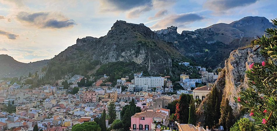 Taormina es una localidad emplazada sobre el Monte Tauros, a doscientos metros de altura sobre el nivel del mar en la costa este de Sicilia. Una pintoresca ciudad que constituye un magnífico balcón natural ofreciéndonos espectaculares panorámicas desde distintos puntos de la ciudad.