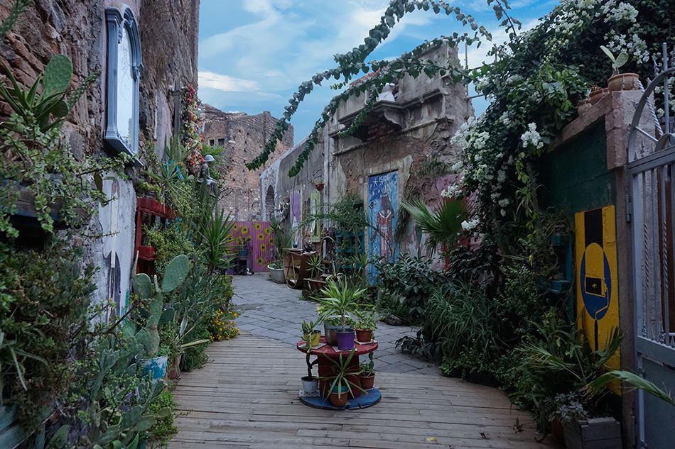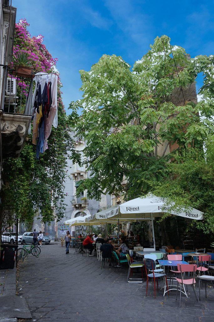Nos adentramos en bohemios callejones que desembocan en una agradable y curiosa plaza de bares y terrazas, es la Piazzetta Goliarda Sapienza que toma el nombre de una actriz, poeta y escritora italiana. En un callejón, los artistas han desplegado su ingenio en una original exposición al aire libre. Terminamos el día disfrutando de una cerveza local en este lugar tan dispar.