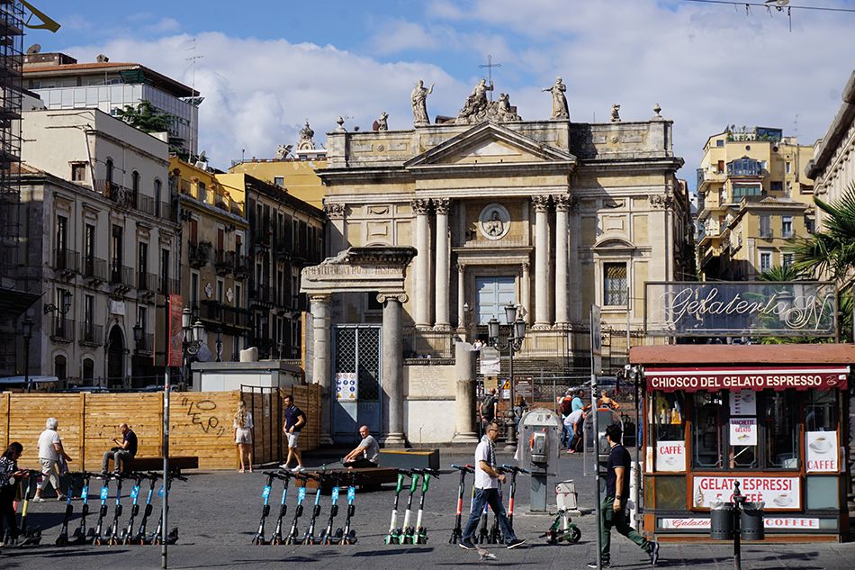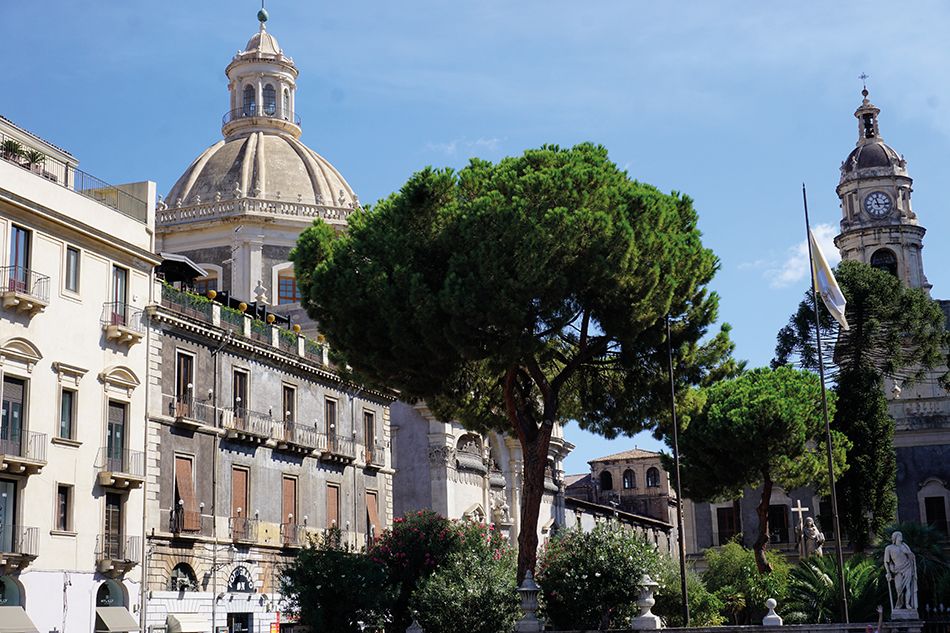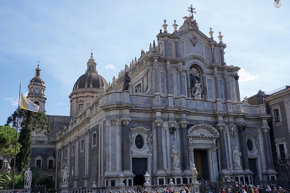 La Piazza del Duomo es una plaza colosal y destaca de nuevo los signos distintivos de la ciudad: la piedra lávica y el barroco siciliano. También alberga el Palacio de los Elefantes, sede del Ayuntamiento. No muy lejos de la Catedral y del palacio hay otro monumento que merece ser visitado, la Iglesia de la Abadía de Santa Ágata que se distingue por la imponente cúpula. Este edificio fue reconstruido sobre lo que quedaba del monasterio benedictino femenino de Santa Ágata. Aconsejamos subir a contemplar una de las vistas más preciadas, de la ciudad, de la plaza y del Monte Etna.