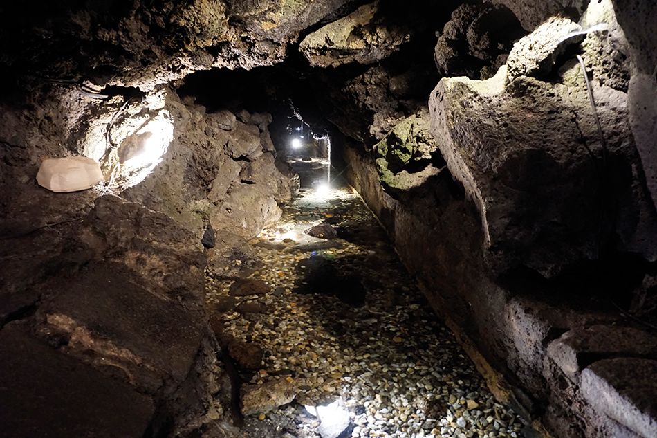 Llegamos a la Piazza Curro’ 6, donde nos esperaba una sorpresa en el restaurante A Putia d’Ostello, en el que además de degustar los apetitosos platos típicos sicilianos en buen ambiente, su sótano encierra una pequeña gruta por donde discurre el río Amenano. Si comes allí (que merece la pena), la entrada a ver la gruta es gratuita. Después de tomar un café siciliano (intenso sabor, siempre acompañado por un vaso de agua), bajamos a ver la gruta, que acomoda unas pocas mesas a la luz de las velas. Un curioso espacio que hay que visitar.