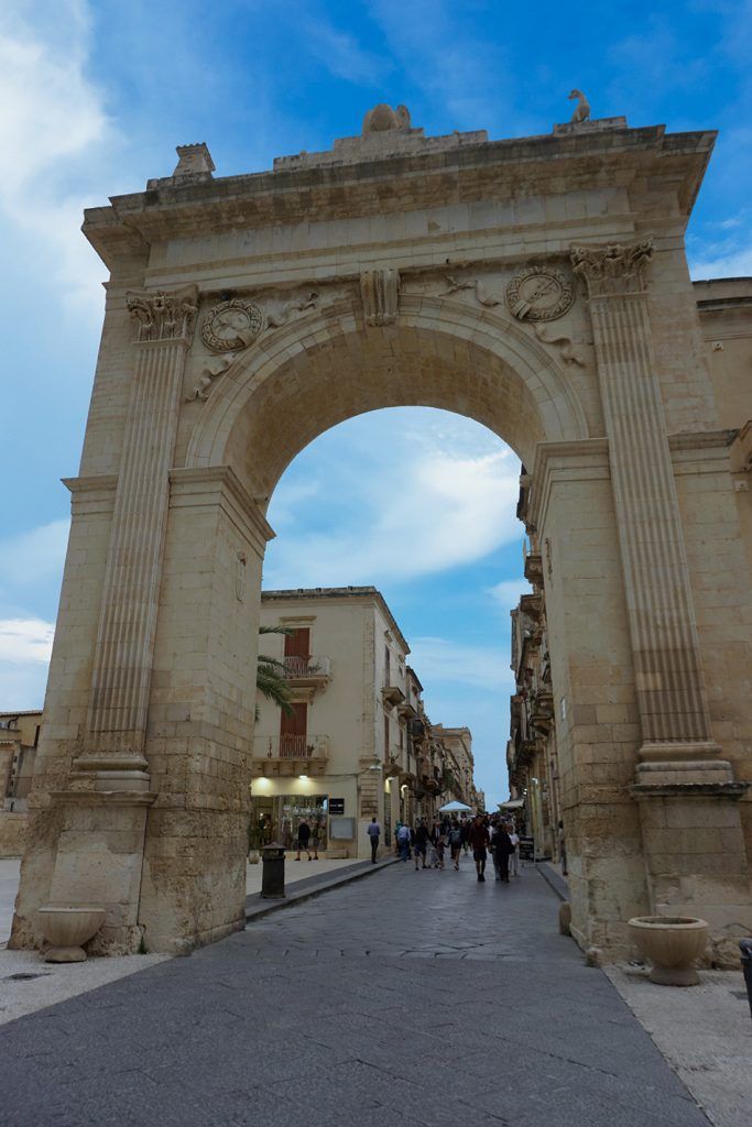 Explorar los principales puntos de interés en Noto resulta fácil, ya que se hallan en su mayoría en la calle principal llamada Corso Vittorio Emanuele, a la que accedimos por un hermoso arco del triunfo: la Porta Reale.