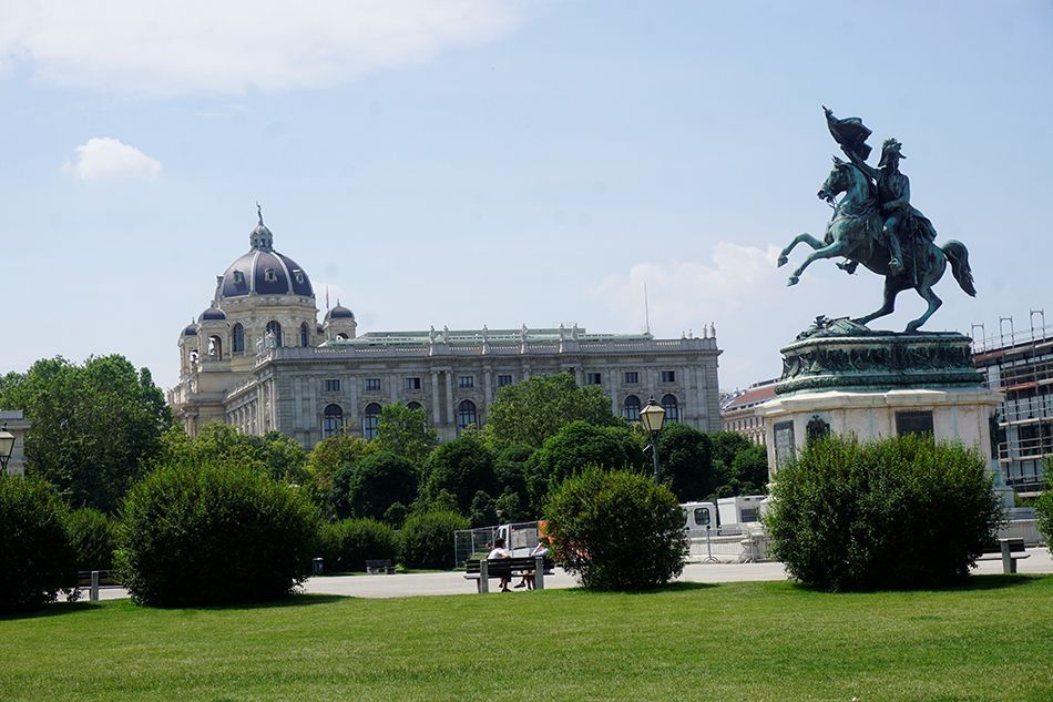 Recorrimos la Ringstrasse en bicicleta y patinete de la empresa Lime, que utilizamos con frecuencia, nos resulta sencilla y se halla por muchos lugares de Europa. También y a muy buena tarifa, Viena dispone de bicicletas públicas, que, aunque no son eléctricas, resultan una buena elección, puesto que el trayecto es prácticamente plano transcurriendo por un desahogado carril bici. Ya sea en bicicleta o patinete es una cómoda forma de admirar la ostentosa e imperialista arquitectura que parece no tener fin a ambos lados de la avenida, que nos deja boquiabiertos con edificios como el Palacio Real Hofburg, el Ayuntamiento, la Bolsa, el Parlamento, el Burgtheater, la Universidad, el Museo de Historia del Arte o el Museo de Historia Natural, que vamos dejando atrás mientras avanzamos, con pequeñas pausas destinadas a la admiración y la fotografía.