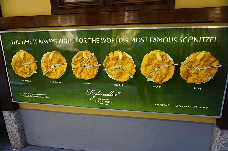 Aunque el símbolo culinario de Viena, es el escalope vienés o Wiener Schnitzel, para el que sugerimos el restaurante de comida típica vienesa Figlmüller famoso por sus enormes schnitzel que se salen literalmente del plato, existen otros platos tradicionales de la gastronomía austríaca, como El Tafelspizt (carne de buey cocida con verduras vino y especias), el sabroso Gulash ( estofado de carne con pimentón y cebolla) , el Knödel (varios tipos de albóndigas de dulce y saladas), la Rindsuppe (sopa de carne),  la Forelle nach Müllerin Art (trucha), Selchfleish, (carne ahumada), Powidl (guiso de ciruelas), Beuschel (ragout con vísceras de vaca), Selchfleisch (carne ahumada) con sauerkraut (col agria).