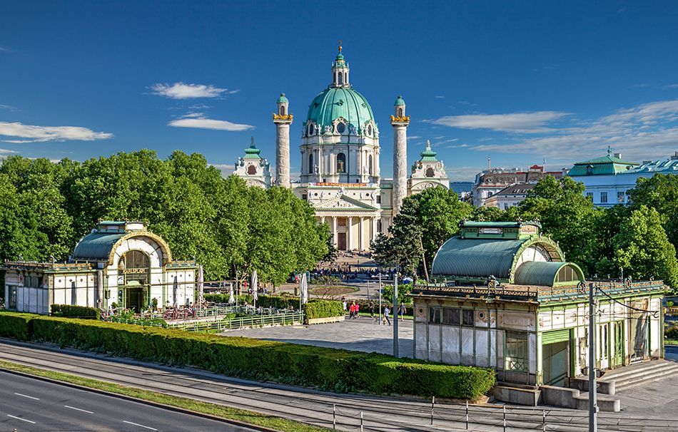 La enorme cúpula verde de la Iglesia de San Carlos que domina la Karlsplatz forma parte del perfil de Viena. Gran y última obra del célebre arquitecto barroco Johann Bernhard Fischer se terminó en 1739, realizándose como una promesa del Emperador Carlos VI durante una epidemia de peste. La iglesia está dedicada al patrón de la familia imperial de los Habsburgo, San Carlos Borromeo. Los visitantes desde la terraza exterior disfrutan de una espectacular vista sobre Karlsplatz, el Resselpark, el Musikverein y la Universidad Técnica.