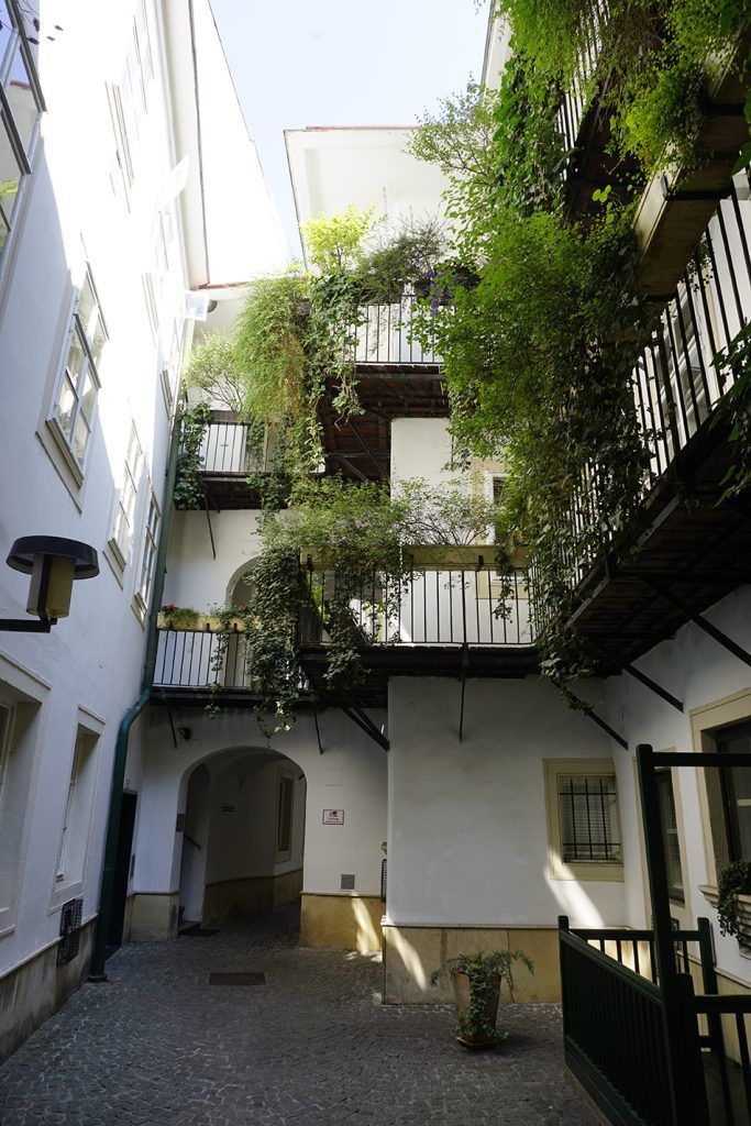 Viena alberga numerosos pasadizos que conectan calles y edificios. Adentrarse bajo un arco situado en alguna de sus calles, supone no solo acortar las distancias sino  descubrir restaurantes, terrazas, exposiciones artesanales, elegantes boutiques, pequeñas plazas y bonitos patios de algunas viviendas de particulares, remanso de paz y tranquilidad entre el bullicio de las calles adyacentes. A unos metros del Café Central, se sitúa el Ferstl (lo verás señalado en la entrada).