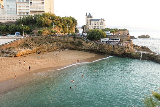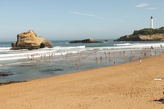 Las más famosas son la Grande Plage (frente al Casino) y la Plage de la Côte des Basques (del otro lado del Rocher de la Vierge).