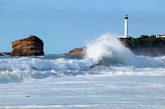 Biarritz y en general las playas de todo el país vasco son famosas por sus olas a las que acuden surfistas de todas partes del mundo. Además Biarritz acoge concursos internacionales desde hace varios años. Playas de fina arena en las que el agua marina es rica en yodo debido a la gran cantidad de algas que contienen. Estas propiedades curativas hacen de la localidad un centro de salud en cuanto a balnearios y talasoterapia se refiere.