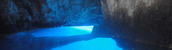 Al suroeste de Vis se encuentra la isla de Biševo, cuyas orillas abruptas esconden numerosas cuevas, entre las cuales destaca la Cueva azul (Modra špilja) con una entrada sobre, y otra bajo el nivel del mar. En ella se produce un fenómeno fascinante de refracción de la luz: hacia mediodía, los rayos de sol que penetran a través de una abertura submarina, se descomponen en haces de luz, que iluminan de azul y malva las paredes, y los objetos sumergidos adquieren una tonalidad plateada.