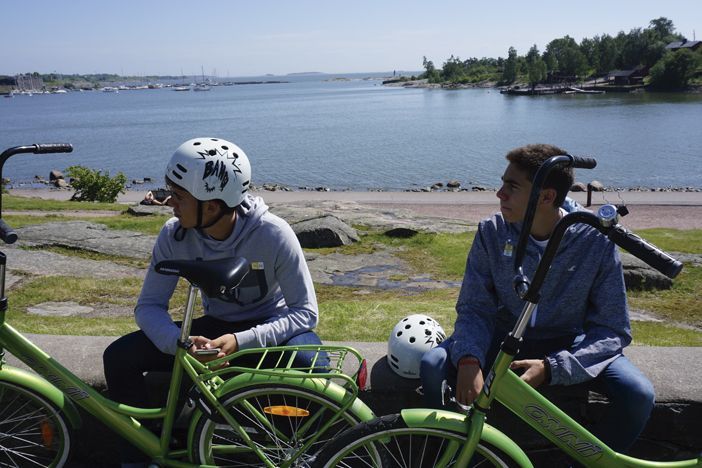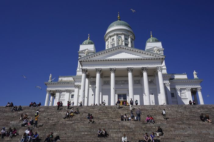 Tal y como estaba programado, llegamos a las 12 de la mañana a Helsinki, (máxima puntualidad en el recorrido). Allí nos quedaríamos hasta las 19.00h, con lo cual decidimos realizar una excursión bicicleta con guía en español conociendo de antemano que el nivel de dificultad es medio. Fue todo un acierto, el tiempo se puso de nuestra parte y el sol, la verde vegetación y el mar nos siguieron en el paseo hasta la Plaza del Mercado. Visitamos la Estación Central, la Catedral y la Plaza del Senado, la Iglesia de Temppeliaukio, integrada esta ultima en una gran roca y regresamos atravesando calles y parques del centro de la cuidad. Una simpática e instruida guía en español (idioma se elige al hacer la reserva) nos documenta en cada parada. Es sencillamente, otra manera de ver Helsinki.