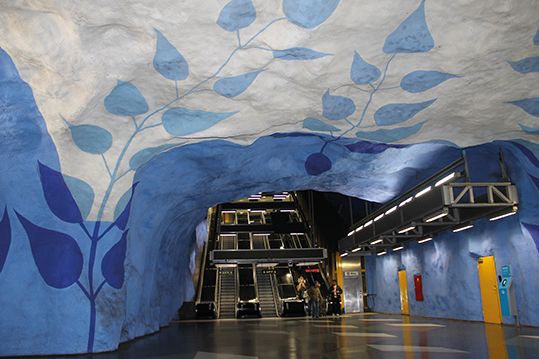El metro de Estocolmo es una enorme galería de arte, se dice que es la más larga del mundo donde más de 150 artistas exponen en 90 de las 100 estaciones que lo integran. Esculturas, mosaicos, pinturas, montajes, inscripciones y relieves que abarcan desde los años 50 hasta la década del 2000 por el precio de un billete de metro. No siempre en todas las estaciones lo podremos apreciar ya que en algunas tan solo se trata de pequeños diseños en vallas, en la iluminación o bajorrelieves que hay que encontrar. Hay visitas guiadas que empiezan y terminan en T-Centralen.