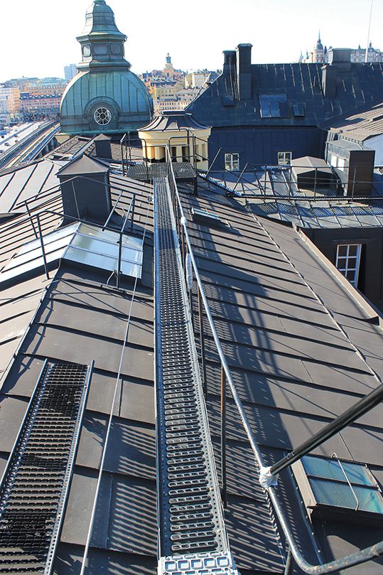 Para admirar este centro histórico Estocolmo ofrece una extraordinaria y original manera de contemplarlo desde otra perspectiva y conocer así la historia de esta bellísima ciudad. Consiste en caminar sobre los tejados de un edificio de la isla de Riddarholmen. ¡Tal y como lo has leído! Una insólita ruta que se realiza con guía y con la máxima seguridad. Con arnés y mosquetones se van recorriendo los caminos habilitados por los tejados. Es fantástico. Echa un vistazo a