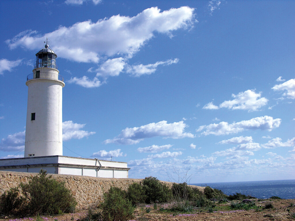 La travesía de Ibiza a Formentera no dura más de 30-40 minutos y en todo momento no dejamos de vislumbrar las fabulosas costas y peñones de ambas islas que van apareciendo según nos vamos alejando de Ibiza. Al ir acercándonos a estos islotes se empiezan a vislumbrar los místicos faros de leyenda. Un placer para la retina. Con un cielo azul intenso y disfrutando de este paseo contemplativo nos acercamos al puerto de La Savina.