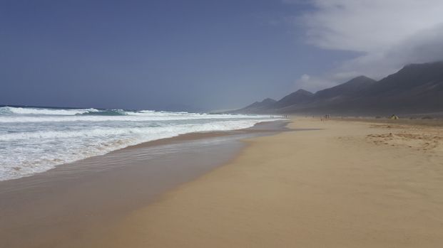 Desde Morro Jable y tras 40 minutos de un sinuoso y complicado camino de tierra. Atravesando otra vez un pintoresco paisaje desértico, llegamos a Cofete, un antiguo pueblo fundado en el 1800, ya desaparecido y que alberga uno de los lugares más bellos e indómitos de la isla de Fuerteventura, la Playa de Cofete. Esta playa de más de 9 kilómetros de longitud, está protegida por el Macizo de Jandía, las montañas más altas de Fuerteventura (Pico de la Zarza, 807 metros).