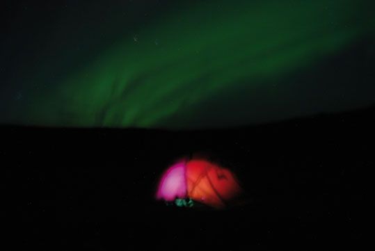 Auroras boreales desde el campamento Mellem