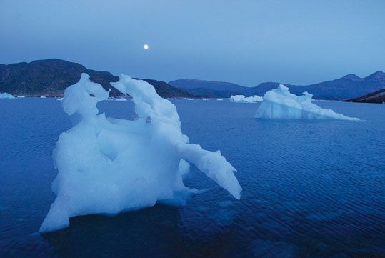 Groenlandia, con una superficie de aproximadamente 2,2 millones de km cuadrados, es la isla más grande del mundo. El hielo del interior, INLANDIS es en extensión la segunda capa helada del mundo, ocupa una superficie de 1,8 millones de km, con un espesor máximo de hasta 3,5 km.