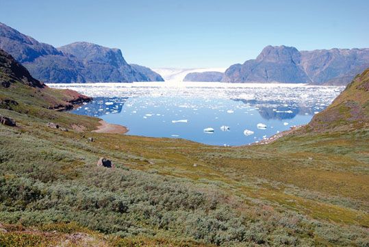 Debido a su gran extensión, Groenlandia ofrece fuertes variaciones climáticas, aunque las condiciones de la vida en la Isla, en su conjunto, están marcadas por la presencia del hielo interior y salvo en algunos valles del sur, el clima puede calificarse de ártico, la temperatura media del mes más cálido no supera los 10ºC
