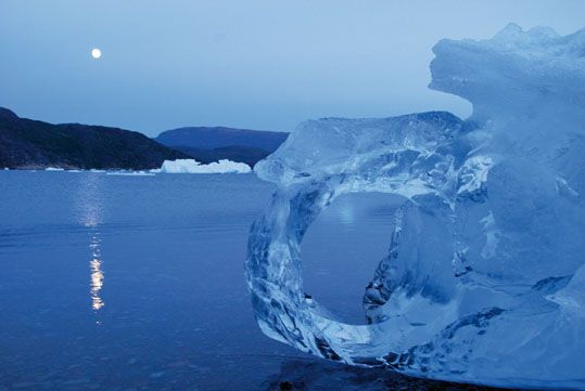 El sonido, que no ruido, de los icebergs rompiéndose o volteándose resulta un estruendo maravilloso en perfecta armonía con el sepulcral silencio del entorno.
