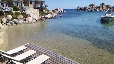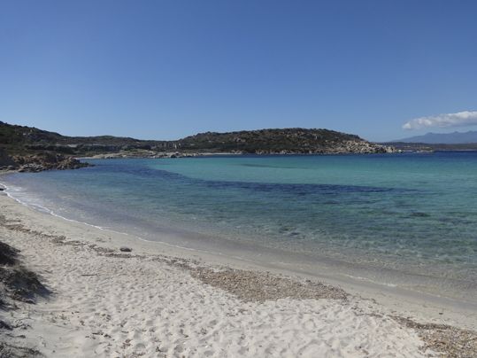 Enfrente, la playa de Palombaggia, de aguas poco profundas, es una de las más bellas de la isla, bordeada de altas dunas blancas y de pinos. Un lugar de ensueño.