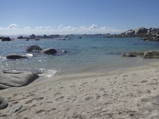 En el insólito “Manto de la Virgen” ya estuvimos en otra ocasión, por lo que siempre atendiendo al viento, bordeamos el litoral tan espectacular que nos muestra el Archipiélago de las Lavezzi. Una reserva natural tan sólo a 10 km de Bonifacio y accesible únicamente por mar. Estos numerosos islotes de apiladas y redondeadas rocas grises, están deshabitados. Calas de blanca arena y aguas azul turquesa van apareciendo a medida que nos aproximamos a esta anómala costa en la que hay que navegar con bastante precaución debido a los numerosos peñones que afloran en el mar. Aquí el paisaje es único y es increíble, se respira pura naturaleza. Nos quedamos ensimismados con estas vistas durante algunas horas.