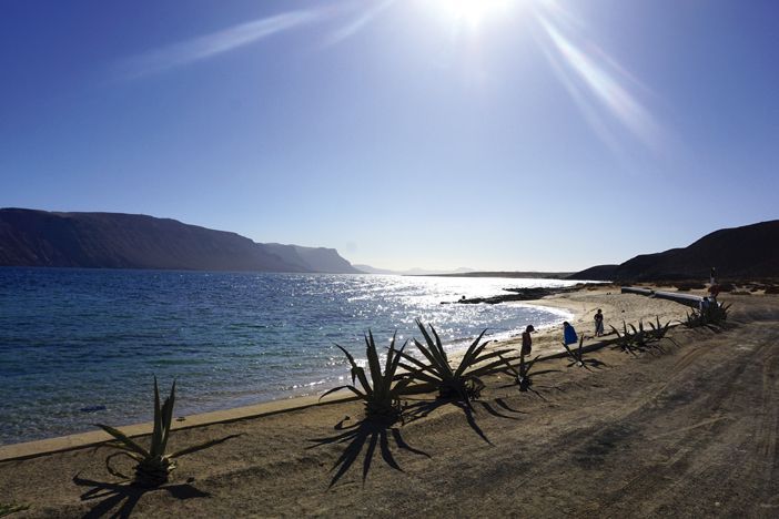 Playa de El Salado, muy cerca de Caleta del Sebo y desde su orilla vemos el Risco de Famara. Cuenta con algunos servicios y es el único lugar donde se puede acampar en una zona señalizada, tras solicitar el permiso correspondiente