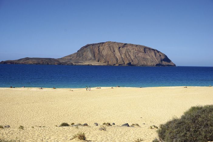 Playa de la Francesa con la montaña «amarilla» en La Graciosa