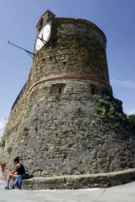 En Riomaggiore la estación de tren queda en la parte inferior. Una bonita imagen se obtiene al descender por el embarcadero, donde se puede contemplar el pueblo de coloridos edificios, acoplados minuciosamente en la montaña rocosa. Una calle, que para ser principal es bastante estrecha, serpentea el promontorio en la que destaca el Castillo de Riommagiore construido en 1260.