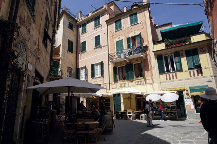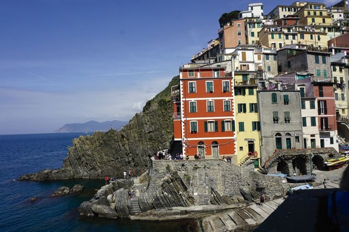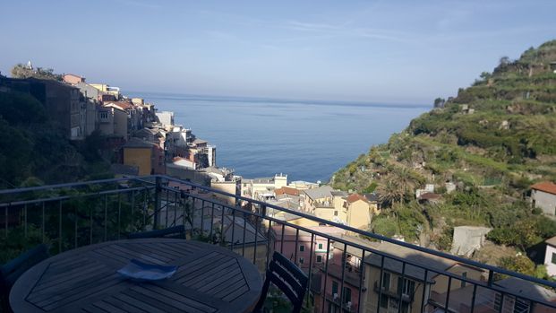Lo más difícil fue el acceso a la vivienda, a la que no llega el vehículo, con el equipaje entre el empedrado, la pendiente y las escaleras, pero cualquier fatiga compensa por el espectáculo que estas localizaciones ofrecen. Manarola se quedó a nuestros pies en una vertiginosa vista en la que las casas de distintos tonos se aglomeran una sobre otra. Están rodeadas de verdes laderas de labranza por donde asoma el mar, que parece comenzar en un puerto diminuto. No hay palabras que describan este mosaico paisajístico.