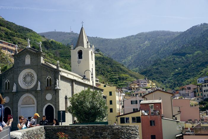 De nuevo las construcciones se sitúan en la falda de la colina rodeada de olivos y viñedos. Recorriendo sus estrechas y adoquinadas calles, algunas terminan en los acantilados. En las lomas se aprecian numerosos senderos que nos ofrecen un panorama asombroso. En la plaza visitamos la Iglesia de Santa Caterina y la Parroquia de San Pedro y de nuevo, Corniglia nos invitó a perdernos a descubrir espacios recónditos y solitarios.