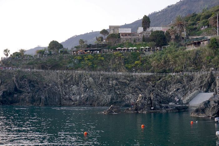 Este pueblo no tiene playa de arena, pero cuenta con una hermosa piscina natural de azul intenso que invita al baño. Visualizamos un sendero que sube del puerto pegado a la roca, es el camino a Corniglia, en el que avistamos la terraza del restaurante Nessun Dorma, donde saborear una cocina hecha de productos naturales o tomar un cocktail en un lugar estratégico. Desde la Trattoria El Billy, ubicada en la parte más alta de Manarola y en medio de la montaña rocosa, obtenemos asimismo unas buenas panorámicas a la par que degustamos una deliciosa gastronomía casera.