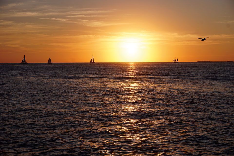 Volvimos a adentramos de nuevo en otro de los tramos del paseo marítimo culminando la jornada sin haberlo programado, en la famosa celebración que se lleva a cabo cada atardecer en Mallory Square. Una plaza frente al mar, donde el trasiego de veleros y goletas para coger la primera fila y admirar la puesta del sol es una constante. Ingeniosa resulta la aparición de una barcaza circular, que a modo chiringuito motorizado se pasea por el mar, mientras el grupo de clientes alza sus copas brindando por tan hermoso panorama. La plaza congrega vendedores, acróbatas, músicos callejeros y adivinos. Tomando un cóctel, sentados frente al mar, contemplamos una de las más bellas puestas de sol que recuerdo. Es una fiesta que no te puedes perder…