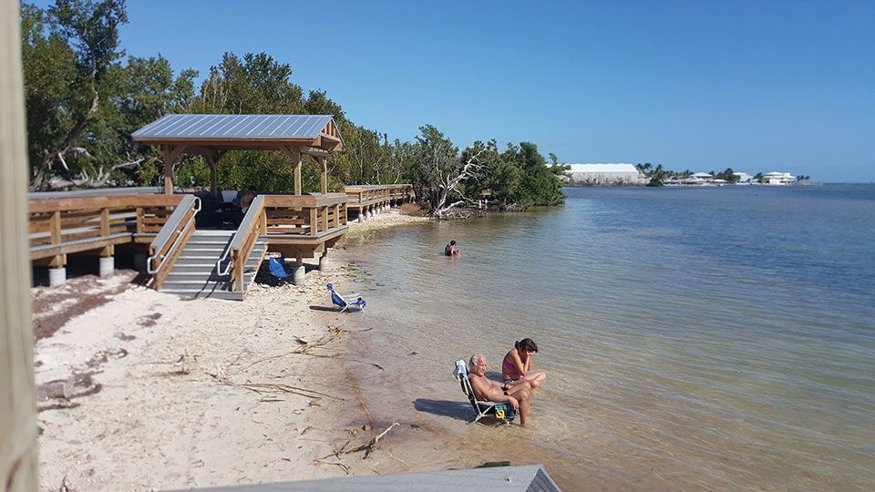 Anne’s Beach se merece una parada. Es una paradisíaca playa gratuita de arena natural y aguas poco profundas, que fue devastada por el huracán Irma en 2017 y ha sido recientemente reabierta. Lleva el nombre de la ambientalista local Anne Eaton. Además de un bonito paseo marítimo y bosques de manglares, cuenta con zona de estacionamiento, mesas para picnic y servicios. En Anne’s Beach disfrutamos de un delicioso y largo baño en sus cálidas y cristalinas aguas. El paisaje es realmente idílico.
