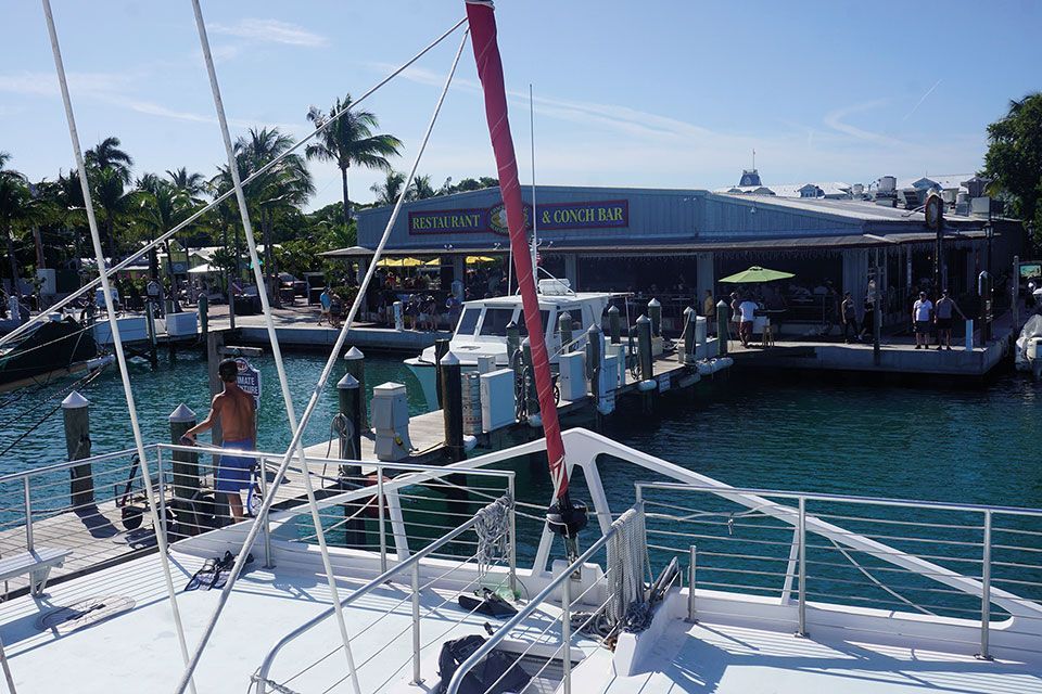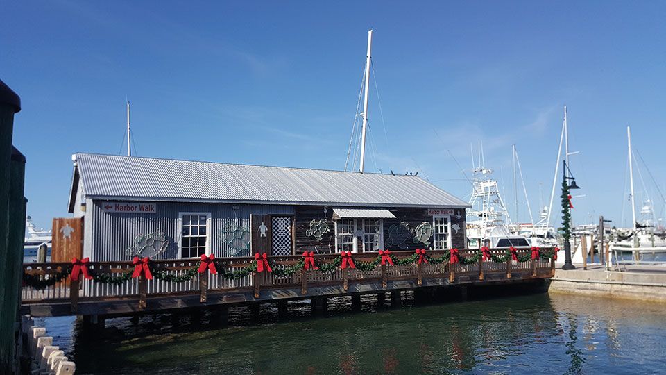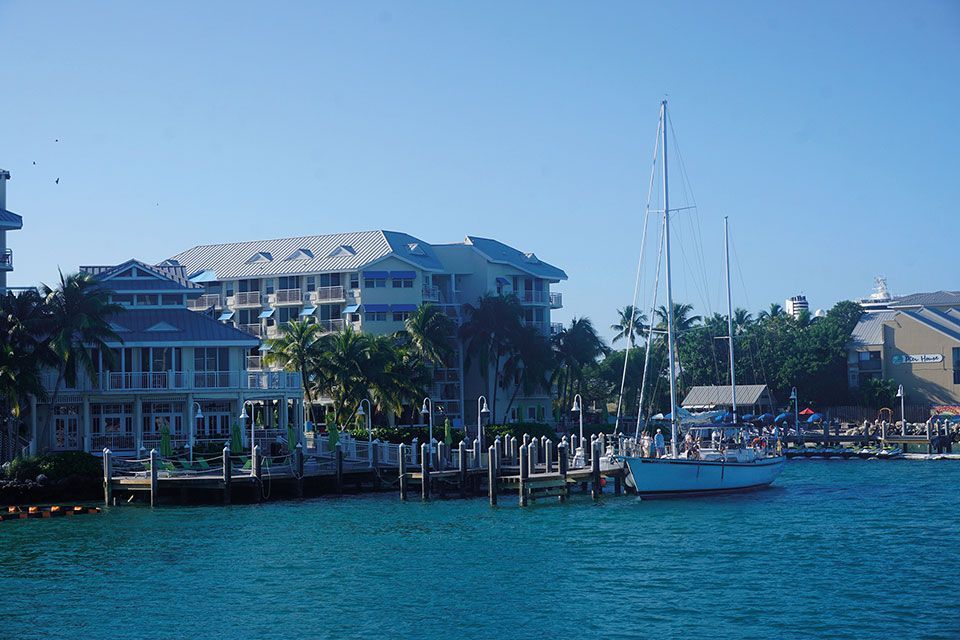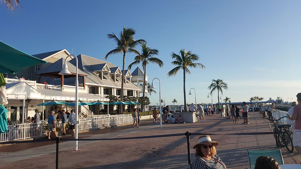 Por otro lado, el paseo marítimo es muy agradable, entretenido y está muy bien cuidado. Caminamos sobre muelles de madera que desembocan en pequeños puertos náuticos. Encontramos restaurantes, cafeterías, tiendecitas de regalos, surf y ropa, así como varios puntos donde se ofertan todo tipo de actividades de agua y excursiones en barco. Es sorprendente la variedad de opciones de recreo para todos los gustos. Probamos unas tapas de marisco y pescado fresco al estilo Key West en un espacioso restaurante de grandes balcones abiertos al mar, el Conch Republic Seafood Company. Tiene una cocina especiada y muy sabrosa que nos encantó.