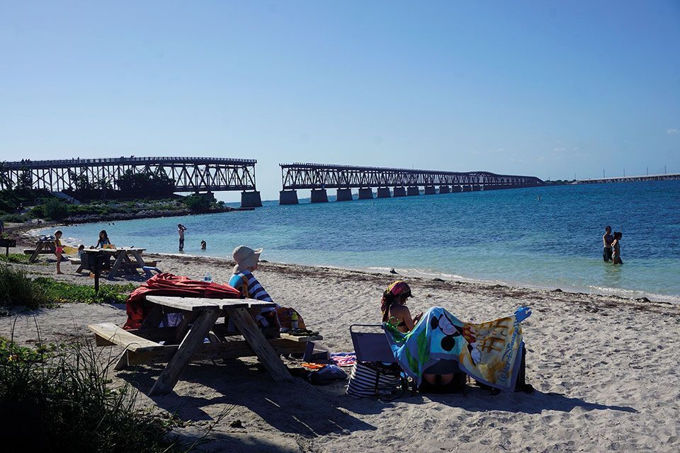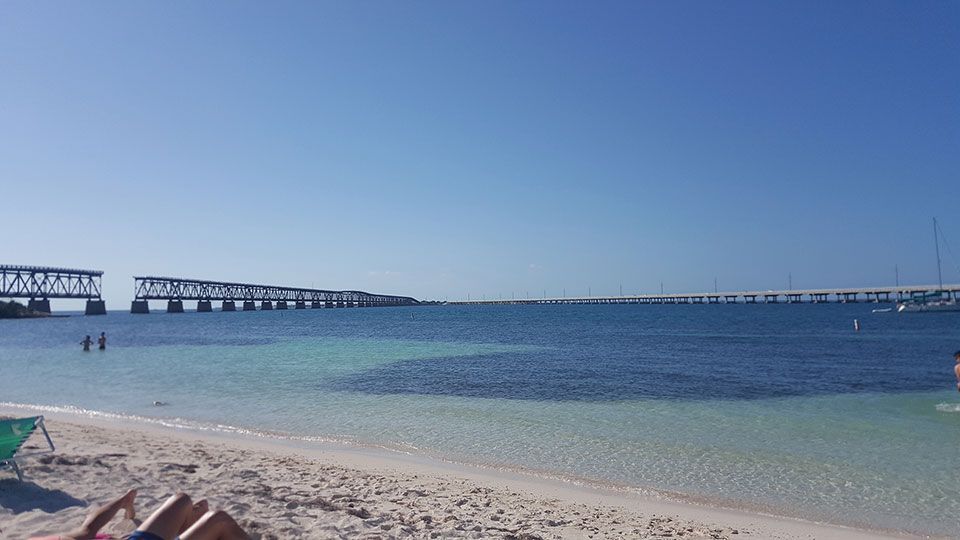 Bahía Honda State Park abarca más de 500 acres y una isla en alta mar. Ofrece lugares para acampar y asolados bungalows donde alojarse en plena naturaleza con una abundante vida silvestre y marina. Es uno de los mejores lugares para practicar snorkel y caminar por la playa. Tiene tres bahías naturales de vegetación tropical y aguas transparentes. Un lugar ideal para contemplar y sumergirse en uno de los parajes más fotografiados con el puente antiguo y el nuevo. Dispone de una zona de baños, una tienda de regalos y senderos que muestran la rica vida autóctona. Paseando por el puente viejo, podremos ver tortugas, rayas o delfines nadando bajo las limpias aguas. Asimismo, Sandspur Beach nos dejó sin palabras, varios tipos de aves zancudas caminaron sin ningún reparo entre nosotros. Las playas de Bahía Honda fueron de las que más nos gustaron.