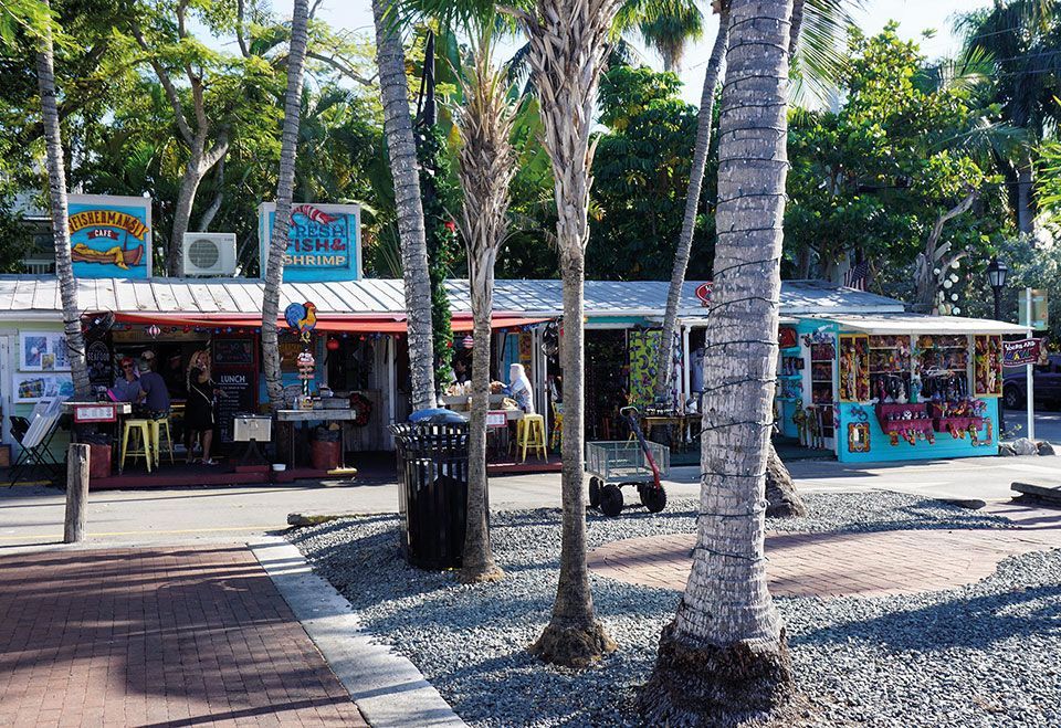La calle comercial Duval Street, de unos 2km, es la más famosa del Key West. Una calle animada y bulliciosa, sobre todo de noche, que cuenta con numerosos bares y restaurantes abarrotados de turistas y lugareños. Observamos una evidente influencia de la cultura cubana, al encontrar rincones con mostradores al aire libre para tomar el típico café cubano que se prepara azucarado. No es de extrañar, ya que Cuba se halla a tan sólo 90 millas desde el Southernmost Point, un punto emblemático donde suele haber cola para hacerse una foto.