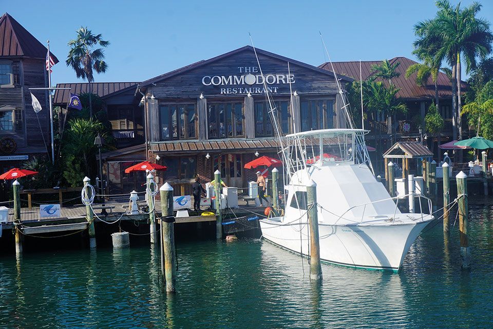 Poco después, atravesamos Islamorada, donde se asientan numerosas tiendas de pesca, ya que es conocida como una de las capitales de la pesca deportiva. Se puede alquilar un barco o participar en una ruta guiada para salir a pescar, practicar buceo o nadar entre la flora y fauna marina. El marisco y pescado fresco es la señal de identidad de la gastronomía de Islamorada, aunque en general es de todos los cayos. En el Centro “Rain Barrel” encontramos un complejo al aire libre con un jardín tropical rodeado de bonitas tiendas de artesanía local, galerías y boutiques que nos ofertan recuerdos únicos. Un lugar muy colorido para hacerse un selfi con “Betsy the Lobster”, una enorme escultura de la langosta más emblemática de los keys. Un sitio perfecto para llevarse un souvenir. También en el parque marino “Theater of the Sea” los visitantes pueden nadar con delfines y lobos marinos, conocer diversas tortugas y divertirse con un espectáculo de loros.