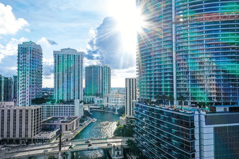 Miami es la capital del condado de Miami-Dade, en el estado de Florida. Fundada en 1896, la llegada del ferrocarril propició su desarrollo al comunicar la ciudad con el resto del país. En la actualidad es la séptima ciudad más grande de EEUU, con gran importancia en el comercio internacional, las finanzas, el arte y el entretenimiento. El puerto de Miami, tiene el mayor volumen de cruceros del mundo, siendo la sede de varias de estas compañías. El río Miami atraviesa la ciudad de oeste a este, desembocando en la Bahía de Biscayne. Las empresas  navieras que tienen al río como base, son responsables del ochenta por ciento del comercio marítimo de Miami con las islas del Caribe. Además, alberga la mayor concentración de bancos internacionales de todos los Estados Unidos.