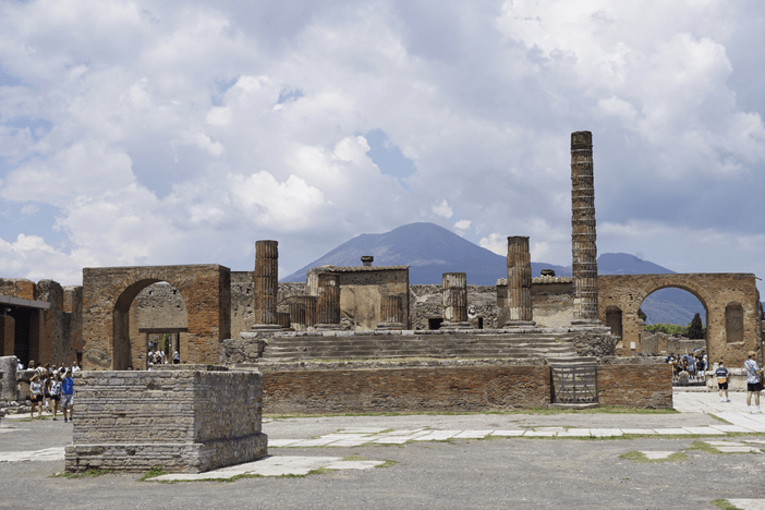 En el año 79dC tuvo lugar la primera erupción documentada del volcán Vesubio, una montaña adorada en la época y que destruyó las ciudades de Pompeya, Herculano, Stabias y otros pequeños pueblos del entorno. Los restos encontrados de las antiguas ciudades de Pompeya y Herculano sepultadas por las erupciones ofrecen un cuadro inigualable de la sociedad y de la vida en la antigüedad clásica.