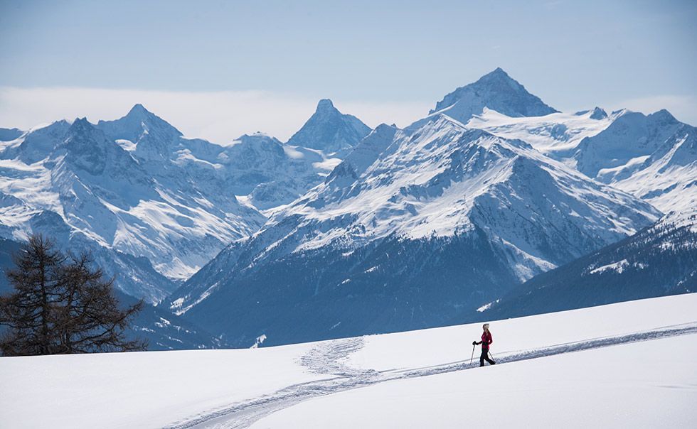 En Crans-Montana hay mil y una formas de divertirse con la nieve. Numerosos caminos esperan a los senderistas y las familias, desde breves paseos por el balneario hasta excursiones más remotas en altura. La parte de Aminona es un paraíso para explorar la naturaleza ofreciendo rutas de ensueño y vistas impresionantes de los míticos picos alpinos. Con raquetas de nieve, a pie o incluso con piel de foca…