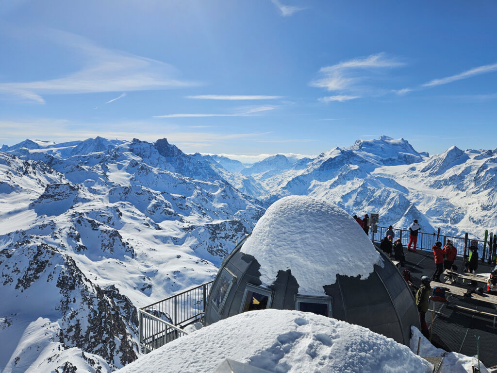 Una vez arriba, la recompensa es espectacular. Desde la plataforma panorámica del Observatorio de Mont Fort, se despliega una vista de 360 grados sobre algunos de los picos más icónicos de Europa: el Mont Blanc, el Matterhorn (Cervino), el Grand Combin y, en días despejados, hasta el Monte Rosa. Es un mirador natural al que se accede por escaleras y que deja sin aliento, tanto en invierno como en verano.
