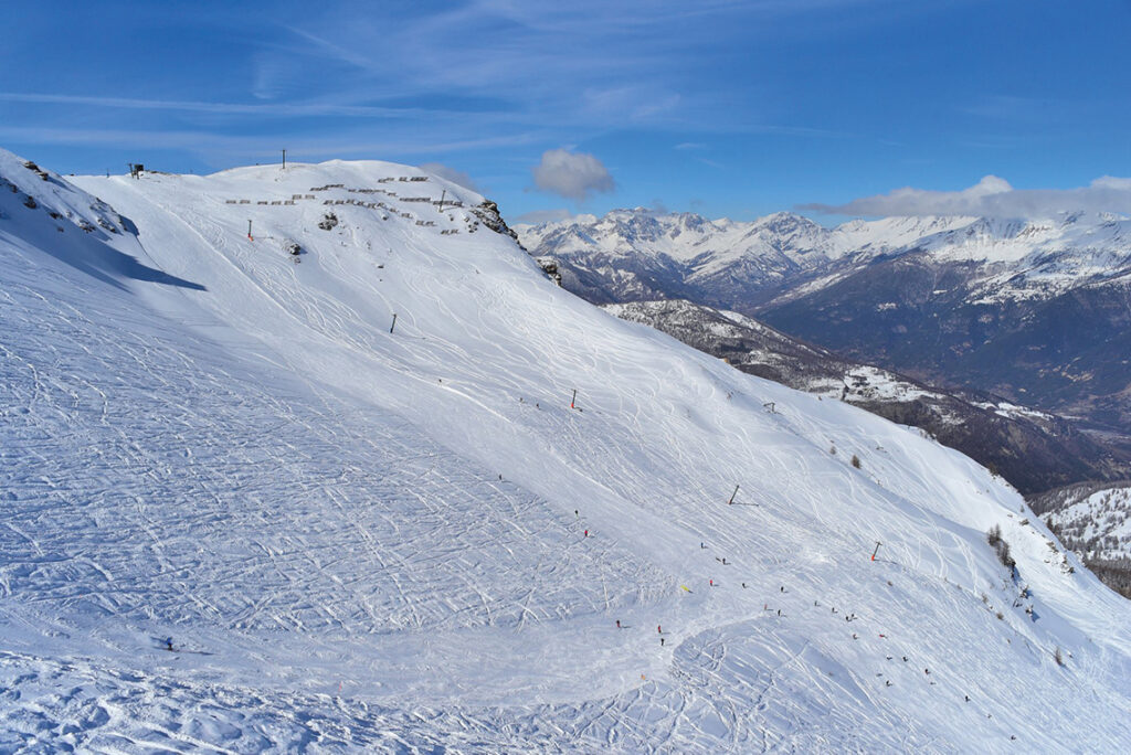 La conexión con las pistas del área de Pragelato amplía significativamente las opciones para los esquiadores y snowboarders, ofreciendo descensos largos, terrenos variados y vistas panorámicas incomparables. Las modernas instalaciones, combinadas con la calidad de la nieve y el entorno natural hacen de Pragelato un destino imprescindible para recorrer sus pistas en su mayoría rojas. Pragelato es conocido también por su enfoque en el esquí de fondo.