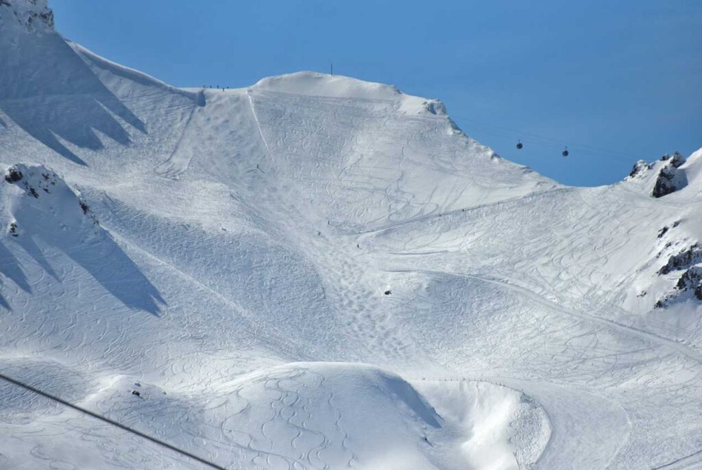 Por fin, el segundo día exploramos esquiando el área de Sestriere, aunque no pudimos salir de la  zona, como era de esperar, al encontrarse las conexiones cerradas por peligro de avalanchas. Sestriere dispone de 120 Km esquiables, que fueron suficientes y disfrutados en esta primera jornada, en la que a su vez, ubicamos los distintos enlaces  a otras estaciones.