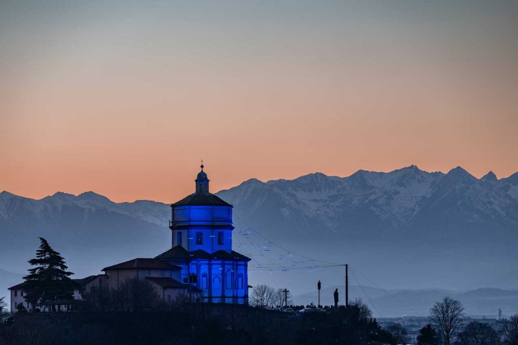 Basilica di Superga. Ubicada en la cima de la colina de Superga, ofrece vistas panorámicas inigualables de Turín y los Alpes circundantes. Es también el lugar de sepultura de muchos miembros de la Casa de Saboya y está vinculada a la trágica historia del equipo de fútbol Torino, cuyo avión se estrelló en la colina en 1949.