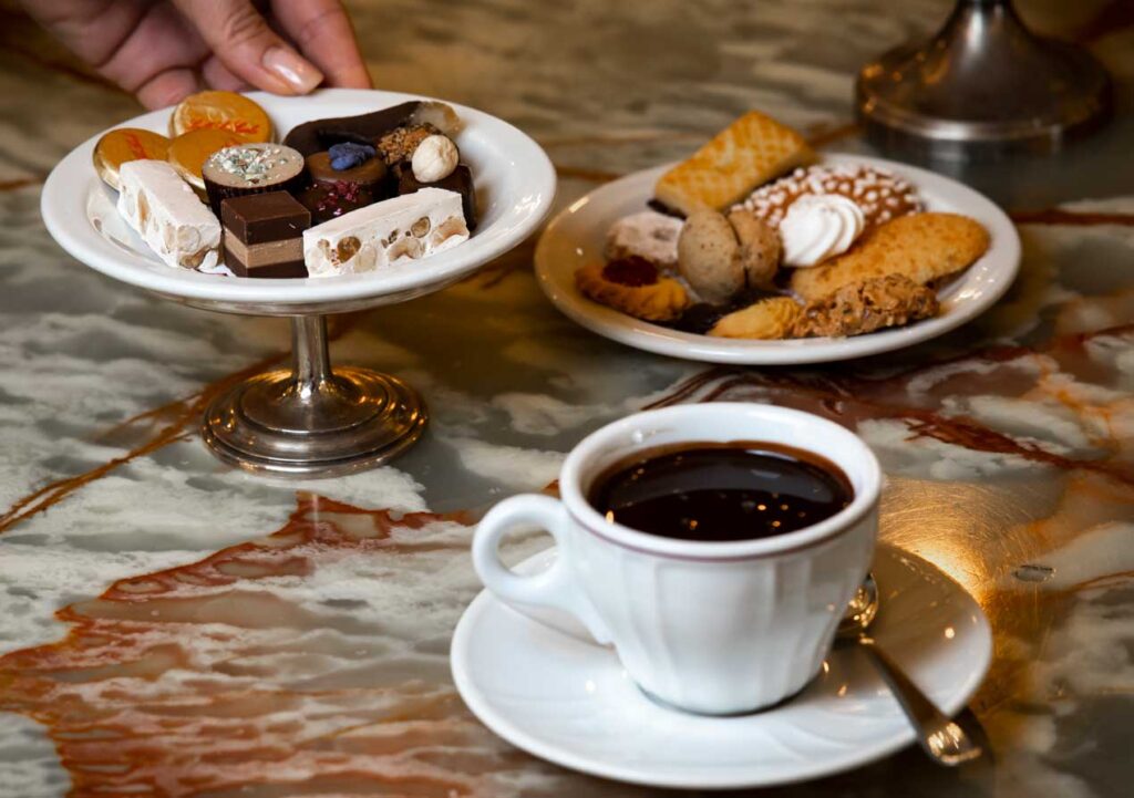 En uno de estos emblemáticos e históricos cafés que invitan al deleite tan solo con la exquisita decoración que transporta a épocas pasadas, saboreamos un delicioso “bicerin”, un clásico e imprescindible de Turín que consiste en una bebida caliente elaborada con café, chocolate y crema. El secreto para degustarlo de la mejor forma es no mezclarlo.