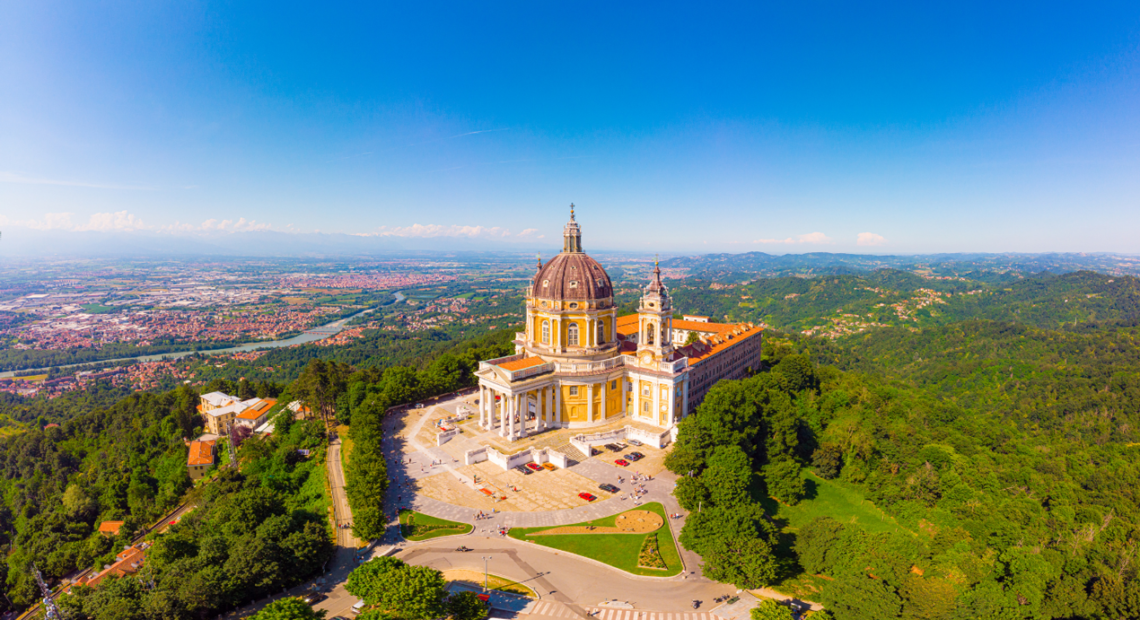 Basilica di Superga. Ubicada en la cima de la colina de Superga, ofrece vistas panorámicas inigualables de Turín y los Alpes circundantes. Es también el lugar de sepultura de muchos miembros de la Casa de Saboya y está vinculada a la trágica historia del equipo de fútbol Torino, cuyo avión se estrelló en la colina en 1949.
